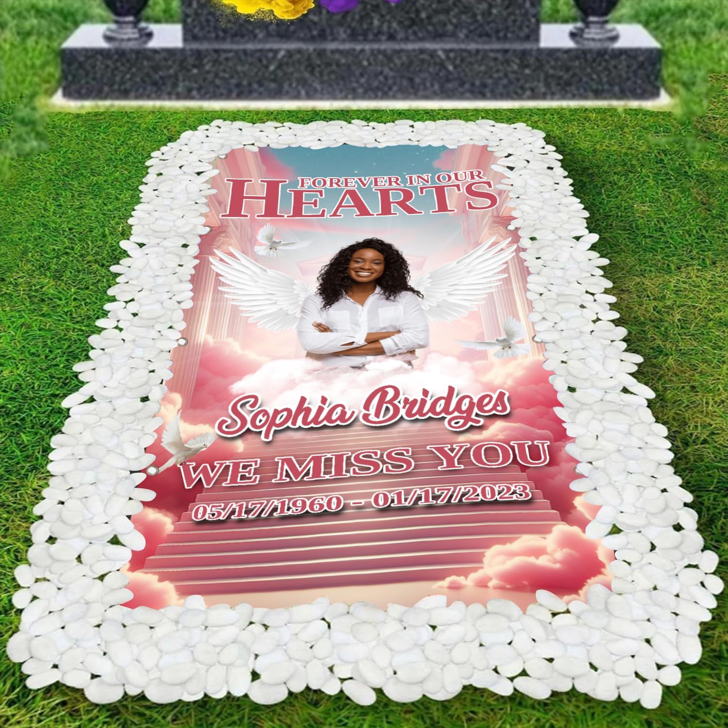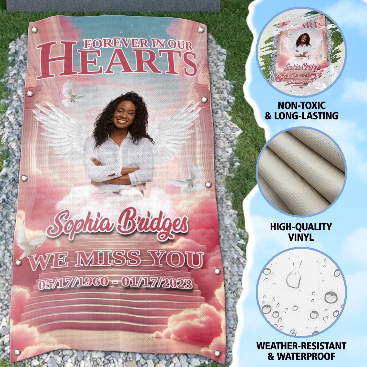 • 【HIGH QUALITY MATERIAL】MadefromHeavy Duty 14 Oz Vinyl;weather-waterproof and UV resistant material.Durable outdoor use; It can last through all seasons(possibly longer).Our custom memorial grave blankets DO NOT INCLUDE ROCKS/STAKES OR ACCESSORIES.
